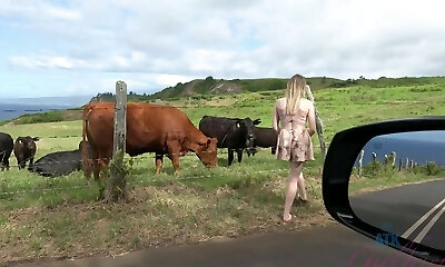 Sex on the beach with hot, huge-chested Amateur Molly. Naked girl inhales outdoor!