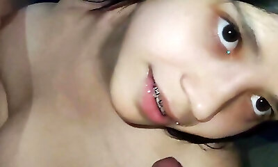 Hot Asian model gives awesome head for guy