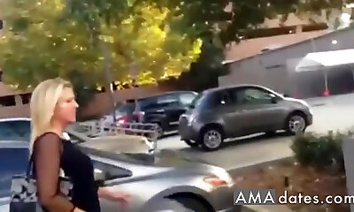 Sexy blonde stewardess Christen Courtney railed in the car