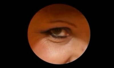 Blue eyed brunette enjoys sucking big pipe sticking out of glory hole