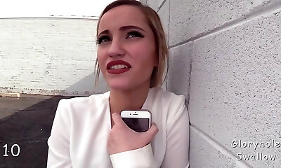 Porta Gloryhole Thick teen gulps loads of cum parking lot