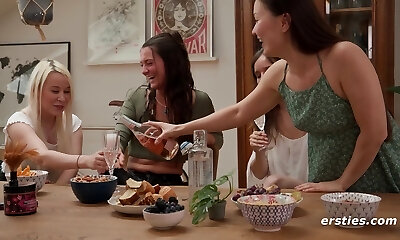 3 Sexy Jaw-dropping MILFs Involve a Lovely Sweet Brunette Teen In Their Gonzo Lesbian Perversions