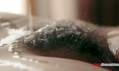 纤细的Heny把她毛茸茸的cunny放在一个脉动的fuckpole上