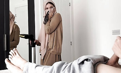 I pull out my pink cigar in front of a Muslim maid in hijab.