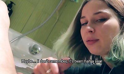Her Boyfriend came to the Bathroom and Gave a Cock to Suck