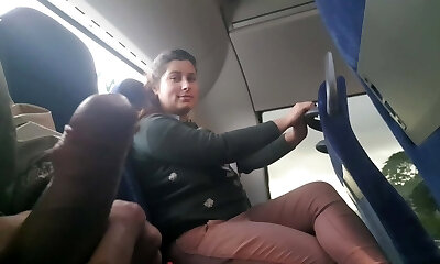 Voyeur seduces Milf to Suck&Masturbate his Dick in Bus