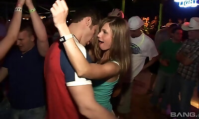 Clothed teens take it from all sides in a club
