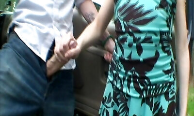 Real outdoor intercourse picnic with a sizzling petite dark-haired on a summer vacation in nature next to the road