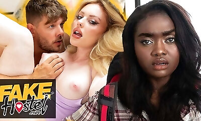 Fake Hostel - PAWG steals Ebony babes BWC cheating boyfriend for hardcore sneaky sex joy