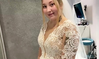 Russian married duo could not resist and fucked right in a wedding dress.