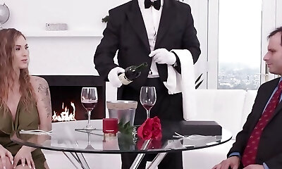 Hubby Cucked by Thick Tits Platinum-blonde Kenzie Love Who Sucks And Fucks Big Cock Waiter Dorian Del Isla