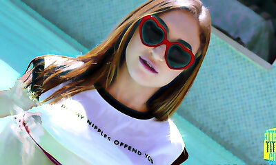 Towheaded babe Bailey Brooke pounded doggy style at the pool